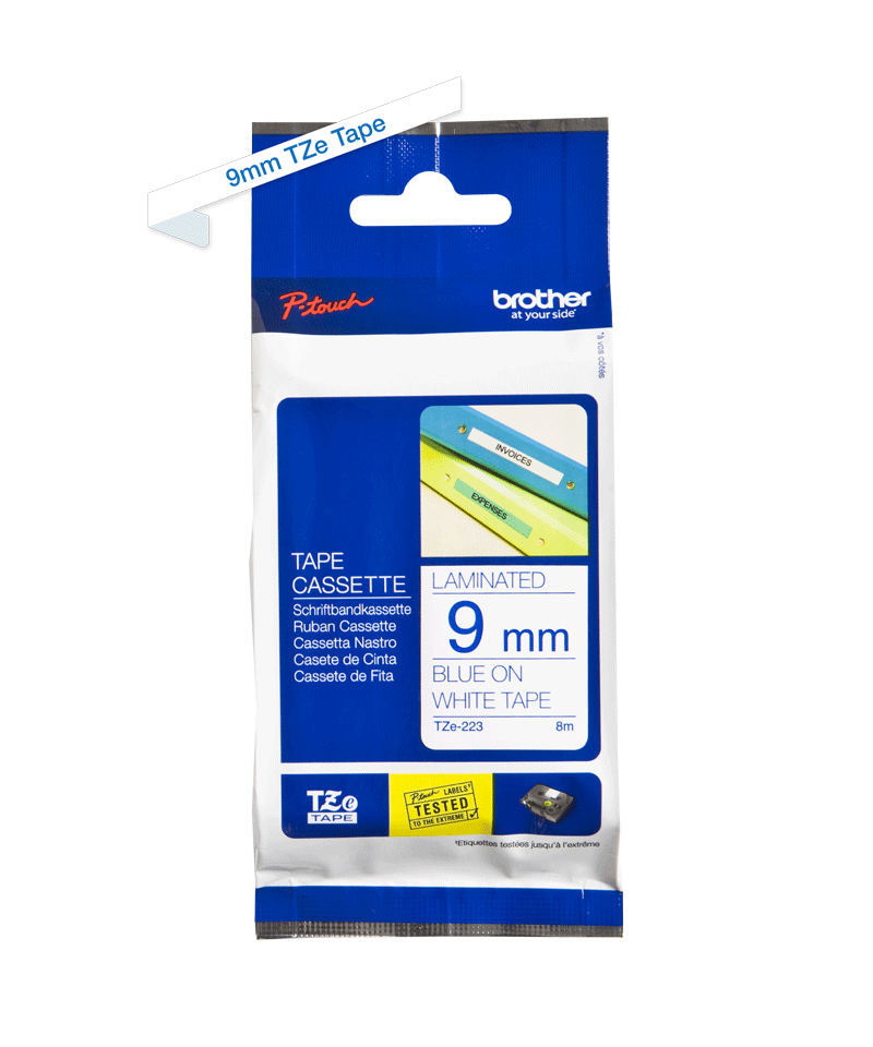 Оригинальная кассета с ламинированной лентой для печати наклеек TZe223 совместима с широкой гаммой принтеров P-Touch, универсальна благодаря легко читаемым синим надписям на белом фоне и идеально подходит для дома, офиса и других мест работы.